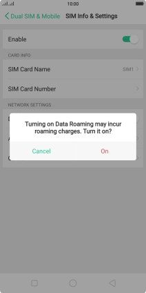 Press the indicator next to "Data Roaming" to turn the function on or off.