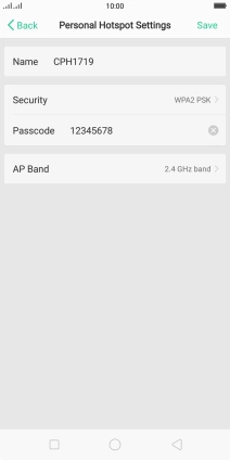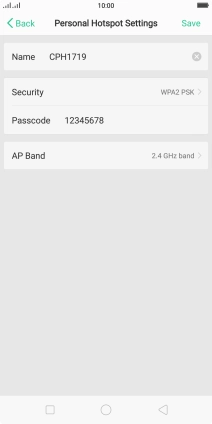 Press the field next to "Name" and key in the required name for the Wi-Fi hotspot.