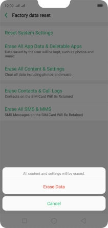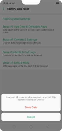 Press Erase Data. Wait a moment while the factory default settings are restored. Follow the instructions on the screen to set up your phone and prepare it for use.