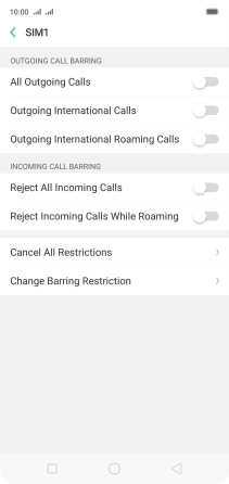 2. Turn call barring on or off