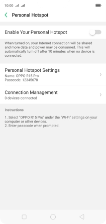 Press the indicator next to "Enable Your Personal Hotspot" to turn on the function.