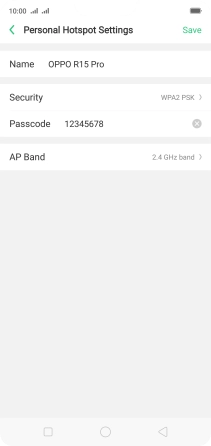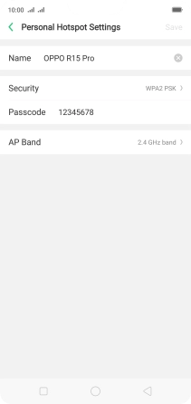 Press the field next to "Name" and key in the required name for the Wi-Fi hotspot.