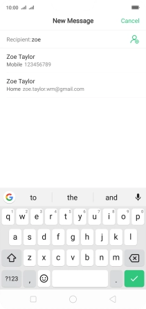 Press the field next to "Recipient" and key in the first letters of the recipient's name.
