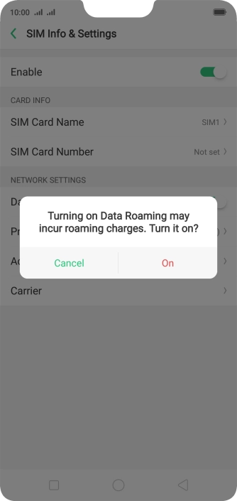 Press the indicator next to "Data Roaming" to turn the function on or off.