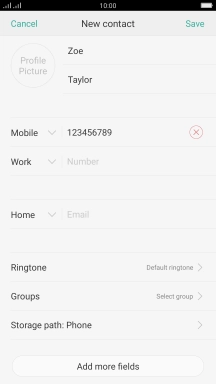 Follow the instructions on the screen to add more information such as an email address and a personal ring tone.