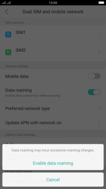 If you turn on the function, press Enable data roaming.