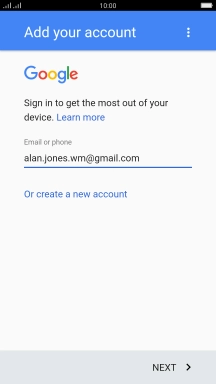 If you don't have a Google account, press Or create a new account and follow the instructions on the screen to create an account.