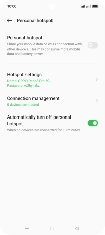 Press the indicator below "Personal hotspot" to turn on the function.