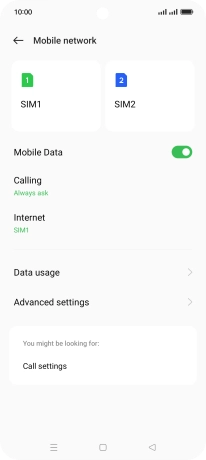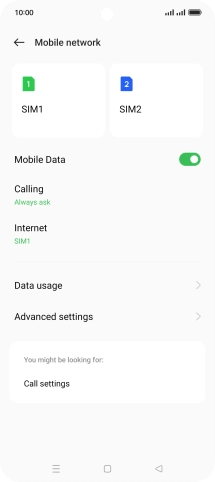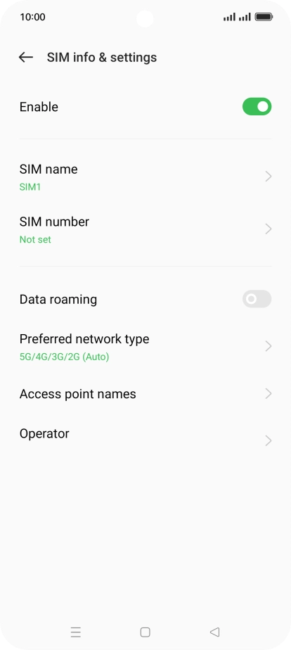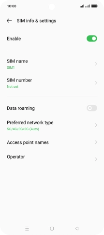 Press the indicator next to "Data roaming" to turn the function on or off.
