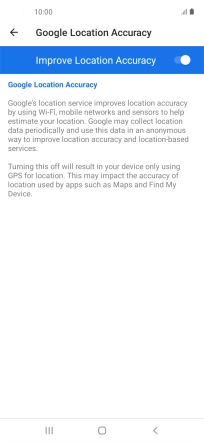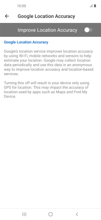 If you press the indicator next to "Improve Location Accuracy" to turn off the function, your phone can find your exact position using the GPS satellites but it may take longer as there is no access to supplementary information from the mobile network or nearby Wi-Fi networks.