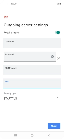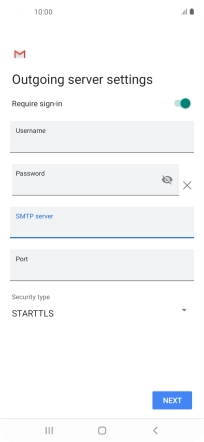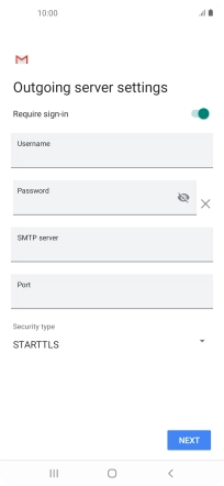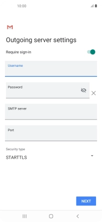 Press the field below "Username" and key in the username for your email the email provider's outgoing server.
