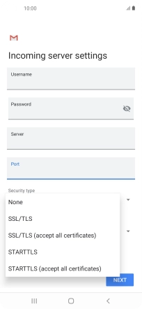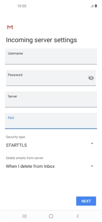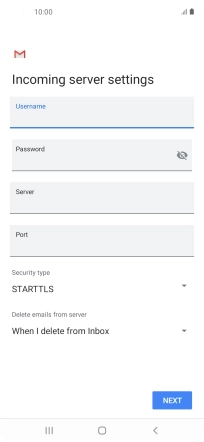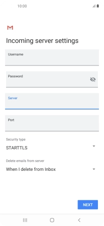 Press the field below "Server" and key in the name of your email provider's incoming server.