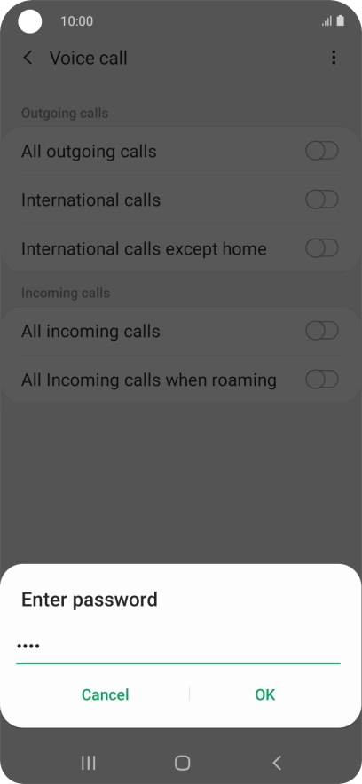 Key in your barring password and press OK. The default barring password is 0000.