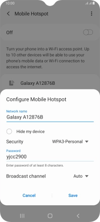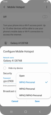 Press WPA3-Personal to password protect your Wi-Fi hotspot.