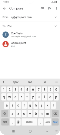 Press the text input field and write the text for your email message.
