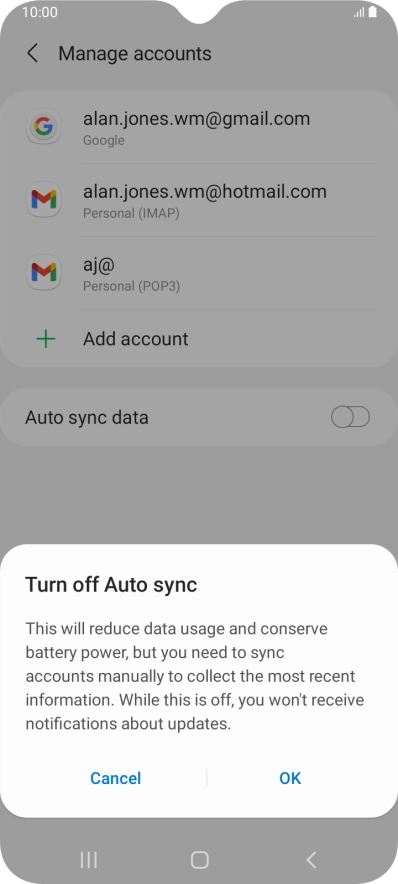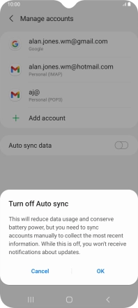 Press the indicator next to "Auto sync data" to turn the function on or off.