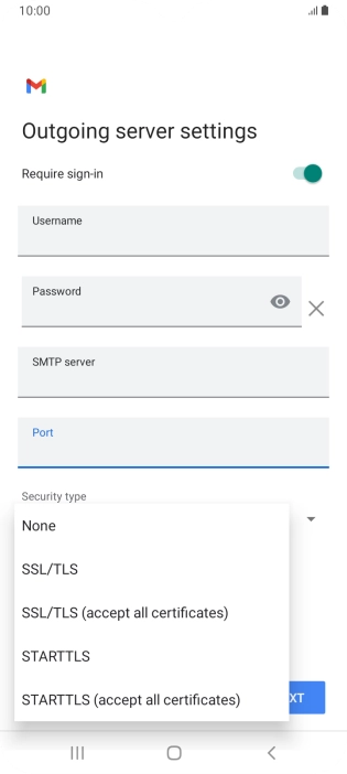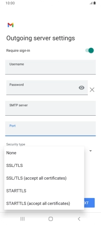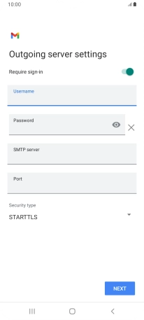Press the field below "Username" and key in the username for your email the email provider's outgoing server.