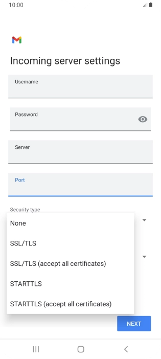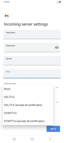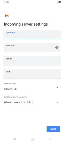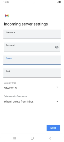 Press the field below "Server" and key in the name of your email provider's incoming server.