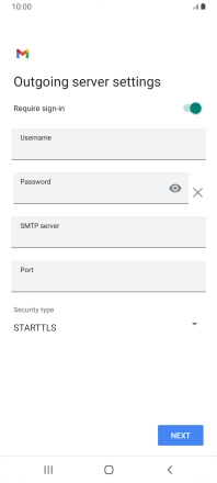 Press the indicator next to "Require sign-in" to turn the function on or off. Please note that if you're using Vodafone's outgoing server, turn off SMTP authentication and leave the username and password fields empty.