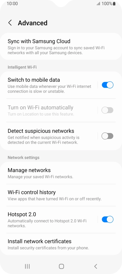 3 Turn automatic use of mobile data on or off