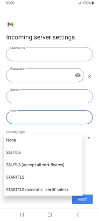 Press the field below "Server" and key in the name of your email provider's incoming server.