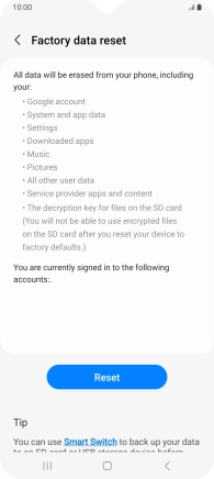 Press Delete all. Wait a moment while the factory default settings are restored. Follow the instructions on the screen to set up your phone and prepare it for use.