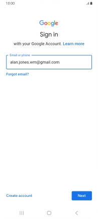 If you don't have a Google account, press Create account and follow the instructions on the screen to create an account.