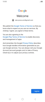 Press I agree and follow the instructions on the screen to select settings for your Google account.