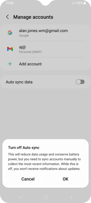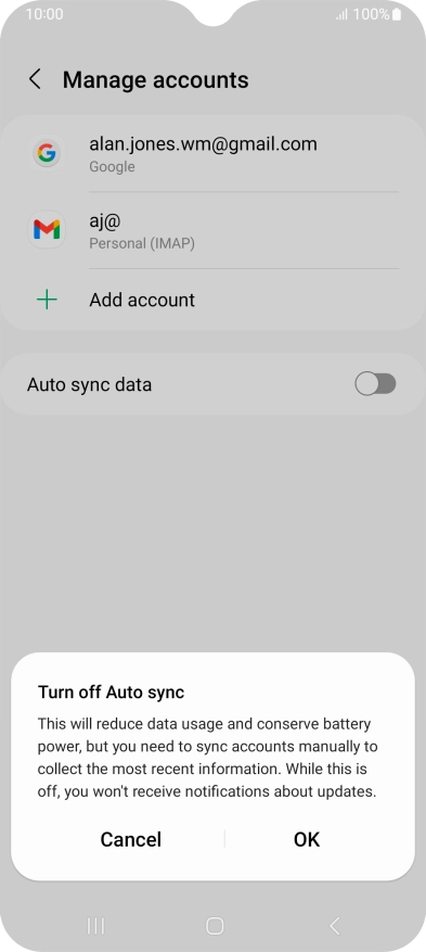 Press the indicator next to "Auto sync data" to turn the function on or off.