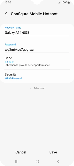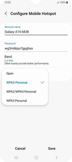 Press WPA3-Personal to password protect your Wi-Fi hotspot.