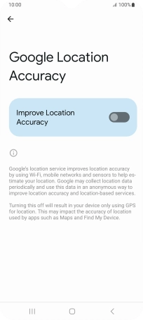 If you press the indicator next to "Improve Location Accuracy" to turn off the function, your phone can find your exact position using the GPS satellites but it may take longer as there is no access to supplementary information from the mobile network or nearby Wi-Fi networks.
