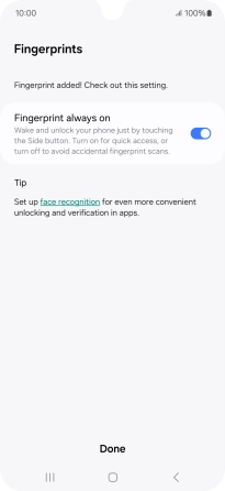 Follow the instructions on the screen to create the phone lock code using your fingerprint.
