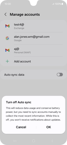 Press the indicator next to "Auto sync data" to turn the function on or off.