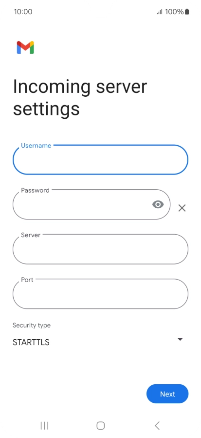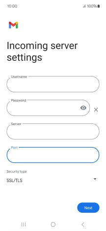 Press the field below "Server" and key in the name of your email provider's incoming server.