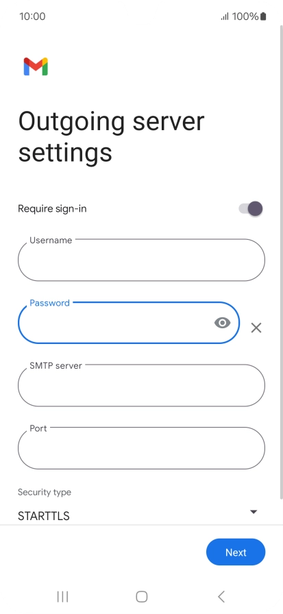 Press the field below "Password" and key in the password for your email provider's outgoing server.