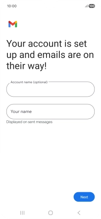 If this screen is displayed, you email account has been recognised and set up automatically. Follow the instructions on the screen to key in more information and finish setting up your phone.