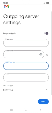 Press the field below "Username" and key in the username for your email the email provider's outgoing server.