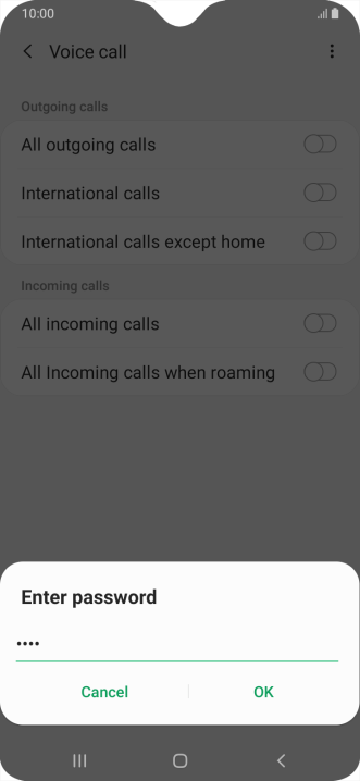 Key in your barring password and press OK. The default barring password is 0000.
