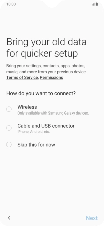 Press Next and follow the instructions on the screen to transfer content from another phone.