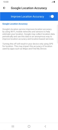 If you press the indicator next to "Improve Location Accuracy" to turn off the function, your phone can find your exact position using the GPS satellites but it may take longer as there is no access to supplementary information from the mobile network or nearby Wi-Fi networks.