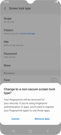 Press Screen lock type and key in the additional phone lock code you created earlier.
