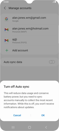 Press the indicator next to "Auto sync data" to turn the function on or off.