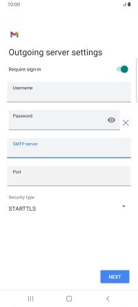 Press the indicator next to "Require sign-in" to turn the function on or off. Please note that if you're using Vodafone's outgoing server, turn off SMTP authentication and leave the username and password fields empty.