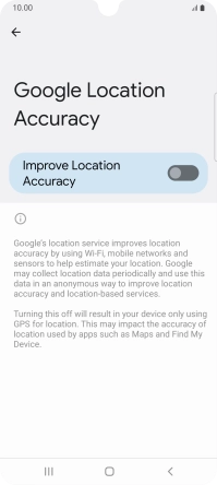 If you press the indicator next to "Improve Location Accuracy" to turn off the function, your phone can find your exact position using the GPS satellites but it may take longer as there is no access to supplementary information from the mobile network or nearby Wi-Fi networks.