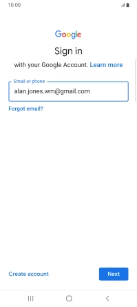 If you don't have a Google account, press Create account and follow the instructions on the screen to create an account.
