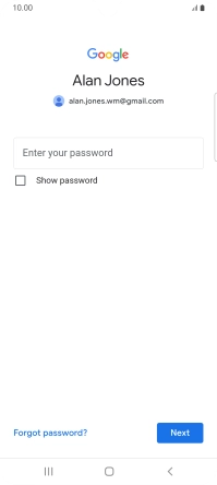 Press the field below "Enter your password" and key in the password for your Google account.