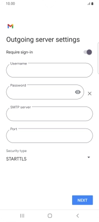 Press the indicator next to "Require sign-in" to turn the function on or off. Please note that if you're using Vodafone's outgoing server, turn off SMTP authentication and leave the username and password fields empty.