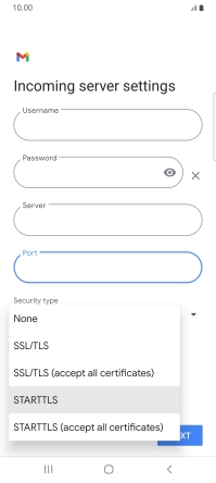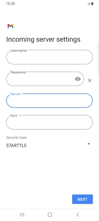 Press the field below "Server" and key in the name of your email provider's incoming server.
