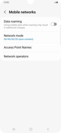 Press the indicator next to "Data roaming" to turn the function on or off.