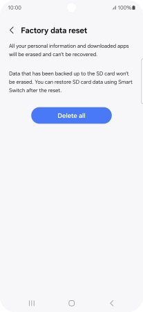 Press Delete all. Wait a moment while the factory default settings are restored. Follow the instructions on the screen to set up your phone and prepare it for use.